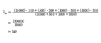 이러한 방법을 가중평균(weighted mean)이라고 부르며 구하는 식은 다음과 같다.