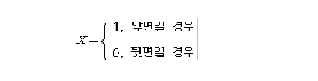 와 같다. 그러면 의 두가지 값 0과 1에 대한 확률이 존재하는데 정상적인 동전이라면