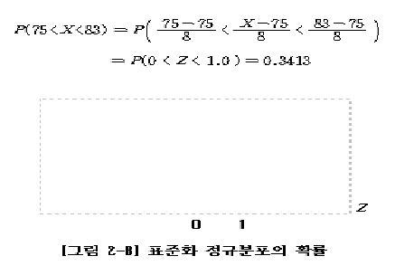 이를 표준화시키면 [그림 2-8]과 같이 되어 표준화 정규분포표[부록1]에서 0.3413임을 찾을