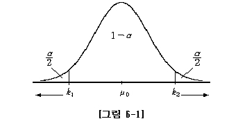 다시 말하면, 그러한 의사결정을 내릴 수밖에 없는 범위에 해당되는 확률을 유의수준(α)이라고 부르는데, 이 값이 주어져야 k1과 k2 값이 정해질 것이며 표본 평균값이 k1보다 작거나 k2보다 클 때 Ho를 기각한다는 것이다.