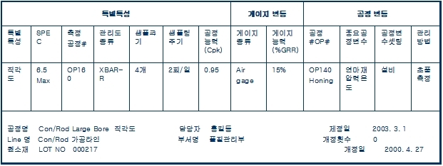아래 사례는 자동차의 주요부품인 con rod 의 spc적용을 위한 준비 사례입니다...