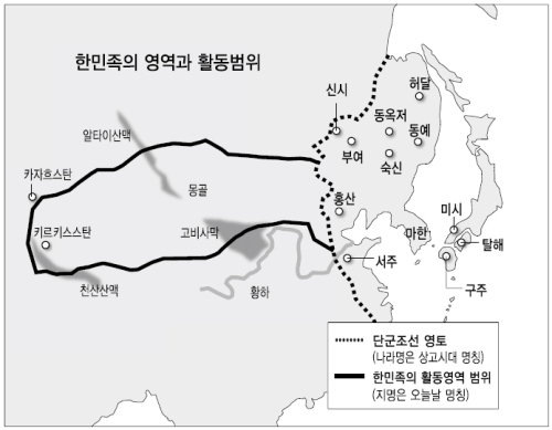 한국의 역사를 두만강, 백두산 이남으로 가둬버리려는 식민사관 학자의 주장을 배제한 상태에서 역사가들의 견해를 종합해보면, 한민족의 발원지는 대체로 ▷바이칼호로 보는 견해 ▷황하 남쪽의 화족과 대립했던 강 북쪽의 동이족으로 보는 견해 ▷키르기스스탄과 중국으로 이어지는 천산산맥, 또는 알타이 산맥으로 보는 견해 등으로 나뉜다. 어느 학설이 정설이라 할 수 없으나 대체로 말을 타고 목축을 하는 유목민이며 중앙아시아에서 한반도까지 이어지는 황하 이북 지역을 활동무대로 삼았을 것이라는 점은 일치한다. 단재 신채호 선생이 우리 민족이라고 했던 여진은 ‘고려’와 발해의 별칭인 ‘진국’의 합성어이다. 청나라를 세운 누르하치가 초기 나라이름을 ‘金’으로 정한 이유가 ‘김의 나라’ 즉 한민족이라는 뜻을 담았다는 학설도 있다.